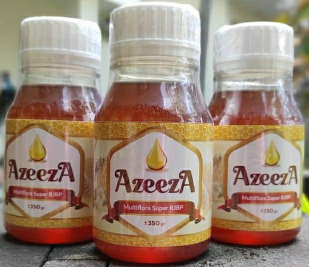Madu “AzeezA” Multiflora Super dengan Royal Jelly & Bee Pollen (RJBP) adalah madu yang dihasilkan oleh lebah Apis Melifera yang menghisap berbagai nektar bunga (multiflora), mengandung berbagai zat aktif yang bermanfaat untuk menjaga & memelihara kesehatan & kebugaran tubuh.Jenis madu ini memiliki kandungan dan juga khasiat yang manjur untuk mengobati banyak penyakit, diantaranya adalah :1. Mengobati sariawan dan panas dalam,2. Meningkatkan daya tahan tubuh,3. Baik untuk masker wajah,4. Baik untuk penderita lupus, dan5. Mengobati asam urat.Royal jelly merupakan sekresi susu yang dihasilkan oleh lebah madu pekerja. Sebanyak 70% komposisinya adalah air. Gula, garam, asam amino, dan vitamin juga menjadi kandungan didalam royal jelly. Royal jelly biasanya dimanfaatkan sebagai obat untuk meredakan gejala pramenstruasi dan menurunkan kolesterol jahat.Bee pollen adalah produk sebelum lebah menghasilkan madunya. Kandungan yang terdapat didalam bee pollen antara lain protein, vitamin, mineral, karbohidrat, dan asam lemak. Bee pollen juga kaya akan antioksidan. Bee pollen sering digunakan untuk meningkatkan sel darah merah dan menurunkan tingkat stres.Madu “AzeezA” Multiflora Super RJBP ini merupakan paduan kesempurnaan dari madu dan bahan-bahan alami yang berkualitas tinggi yang berada didalamnya sehingga menghasilkan sebuah produk kesehatan alami murni yang terbaik dan sangat bermanfaat bagi pemeliharaan dan perawatan kesehatan dan kebugaran tubuh.Berat : 350 grAturan Pakai : Anak : 1 sendok makan 2× sehariDewasa : 2 sendok makan 2× sehariDinkes P-IRT no. 2093273023240-23HALAL LP-POM MUI no. 01121248270820Kadaluarsa : Desember 2023